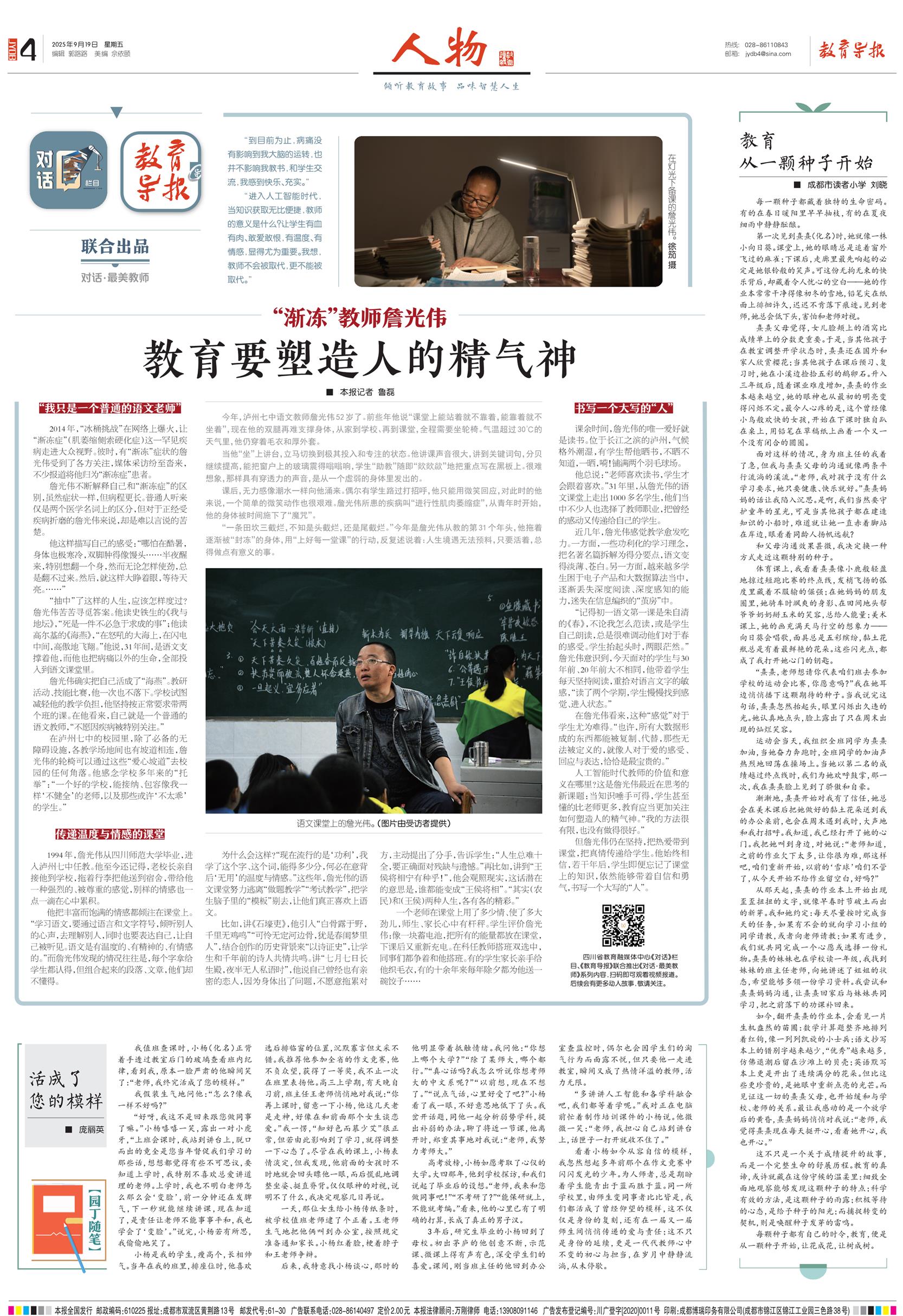 “渐冻”教师詹光伟:教育要塑造人的精气神