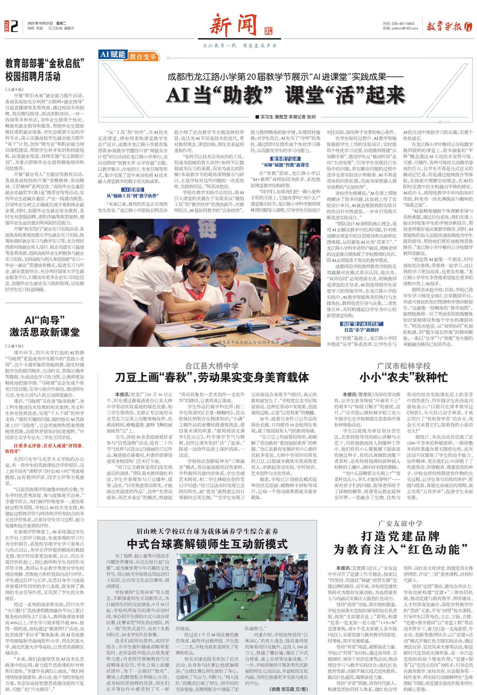 (上接1版)AI“向导”激活思政新课堂
