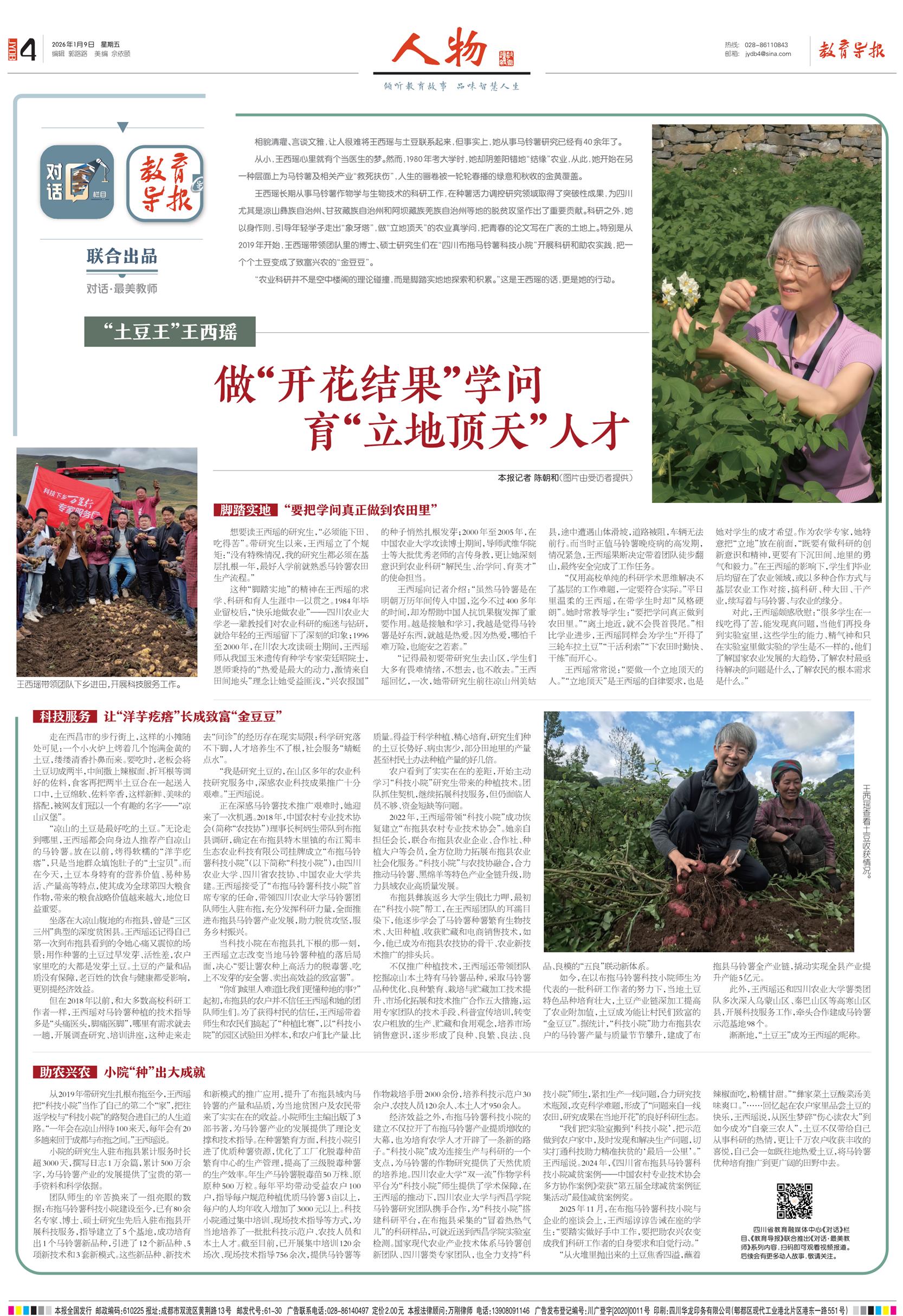 “土豆王”王西瑶:做“开花结果”学问 育“立地顶天”人才