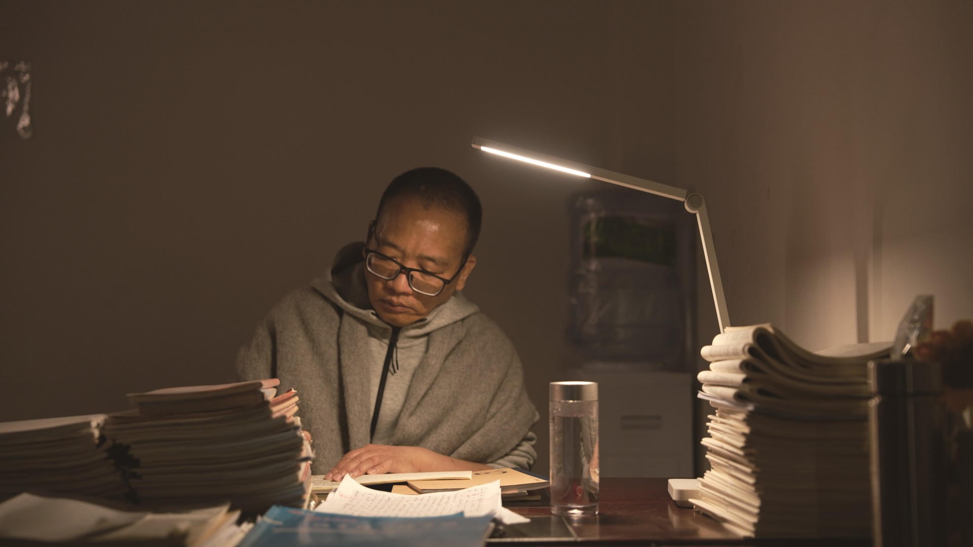 在灯光下备课的詹光伟。
