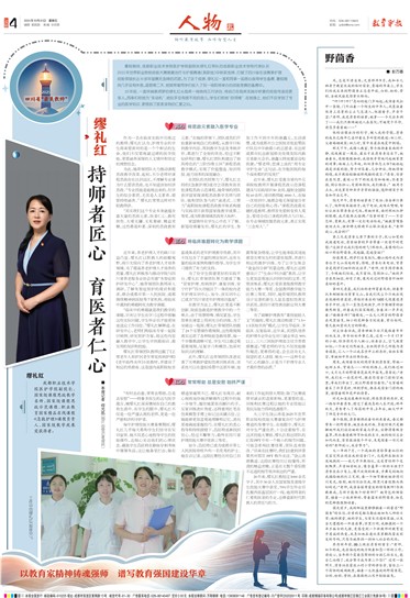 20年前,一直怀揣教师梦的缪礼红从临床一线转向三尺讲台,将自己在临床实践中积累的经验传递给更多人。同事们称她为“永动机”,她似乎总有使不完的劲儿;学生们称她“好师傅”,在她身上,他们不仅学到了专业的医学知识,更悟到了医者该有的仁爱之心。