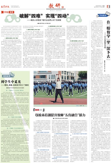 教育方式方法,仁者见仁,智者见智。在小学数学教学的道路上,我们应在“慢慢来”的课堂里,观察、倾听、思考,透过那些司空见惯、习以为常的现象看到人的发展本质。遵循学生的认知规律,让学生在数学活动中去体验、去感悟,做到刚柔相济、快慢有致,才能奏响美妙的音符,让慢的教育润泽生命成长。