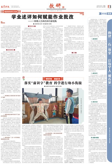 2021年,教育部颁发了《幼儿园入学准备教育指导要点》,围绕幼儿入学所需的关键素质,提出“身心准备、生活准备、社会准备、学习准备”4个方面的内容。针对学习准备,科学的幼小衔接不是将小学知识提前学习,而是要积极保护孩子的好奇心和求知欲,培养良好的学习习惯和基础能力。笔者所在的幼儿园以项目式园本研修为载体,聚焦幼小衔接“前识字”教育实践活动,构建以“厘清概念——聚焦问题——路径建构——成效审视”为核心的研修路径,项目组通过一年探索,取得了显著成效。