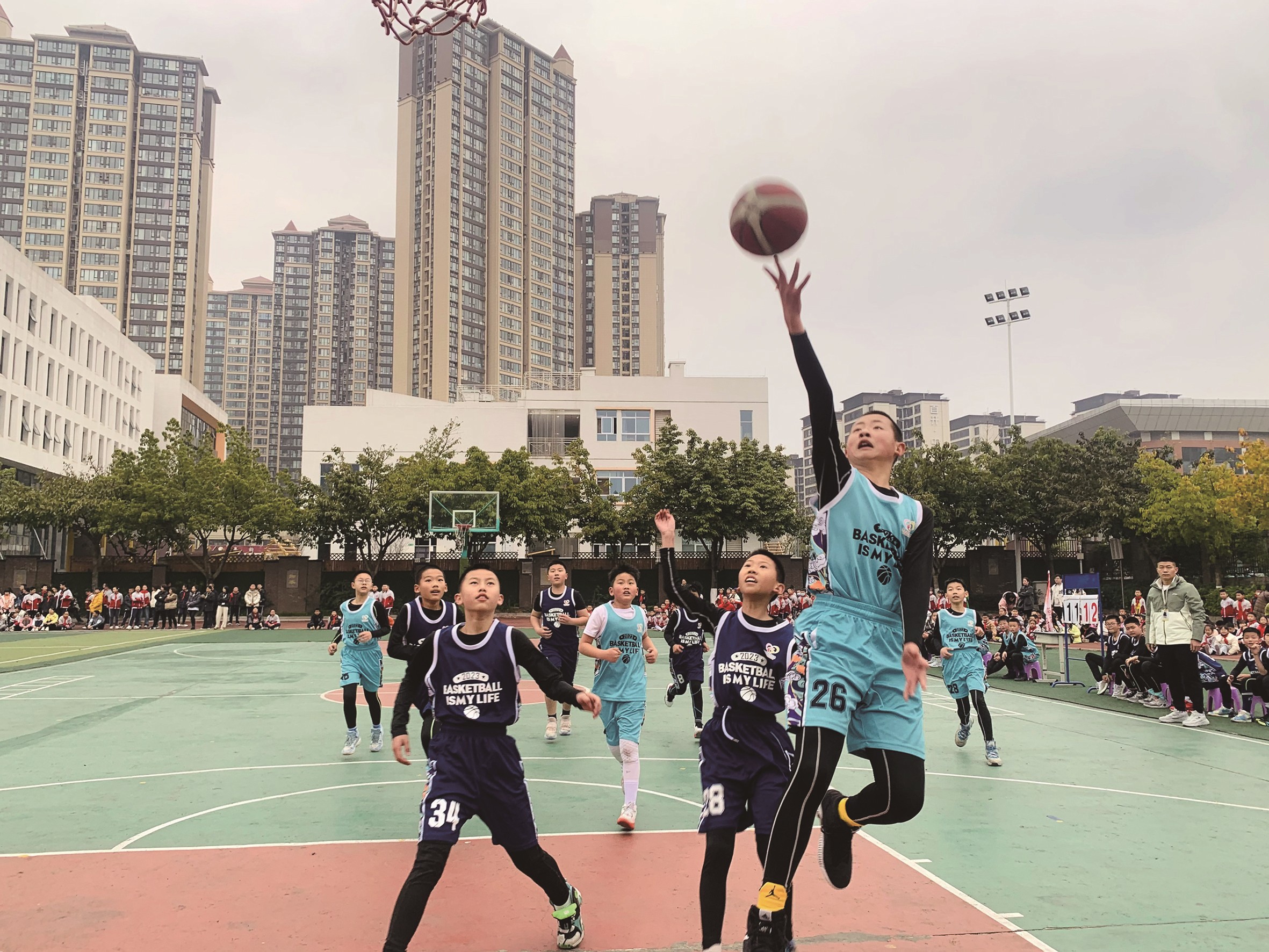 篮球场上奋力拼搏的学生。(图片由学校提供)
