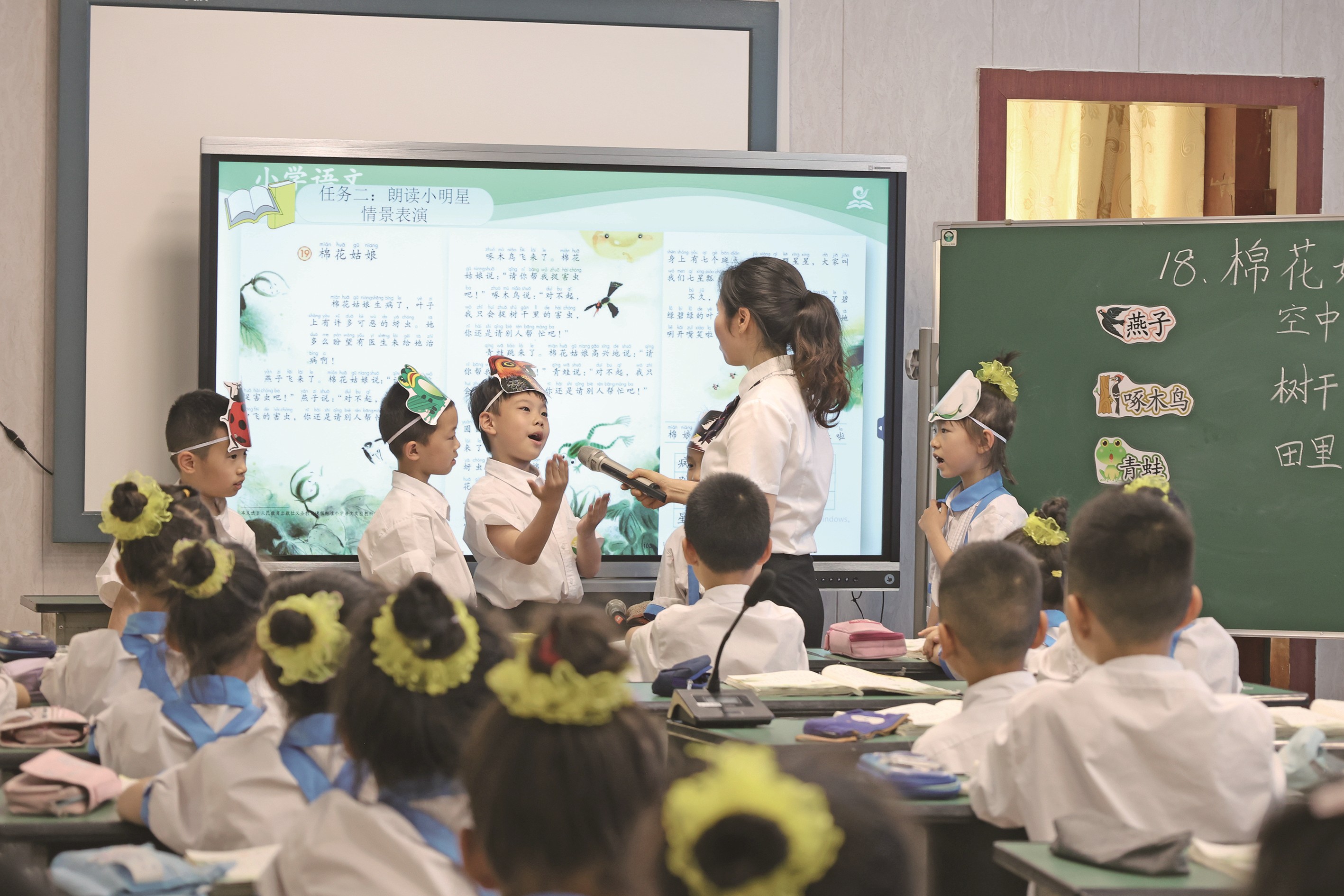 原本是一所乡村学校的下西小学,随着城镇化发展,其所在区域被划为经济开发区,如今已是工厂林立,越来越多的进城务工子女需就近入学。“学校‘底子薄’,如何快速满足周边百姓对教育‘质’和‘量’的要求,是目前急需解决的问题。”梁波山介绍,2023年,学校在区教育局统筹规划下加入南鹰小学教育集团,不仅每周都有集团跨校教研,每学期还有为期一周的领航学校“驻校诊断”,下西小学在学校管理、校园文化、师资建设和教育教学上都得到了细致的指导,“集团化办学就像一场‘及时雨’。”