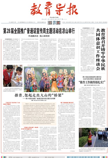 《中国教育报》讯(记者 高毅哲)9月24日,以“加大国家通用语言文字推广力度,促进铸牢中华民族共同体意识”为主题的第28届全国推广普通话宣传周主题活动在四川省凉山彝族自治州西昌市举行。教育部党组书记、部长、全国推普周领导小组组长怀进鹏,四川省委副书记、省长施小琳出席活动并致辞。