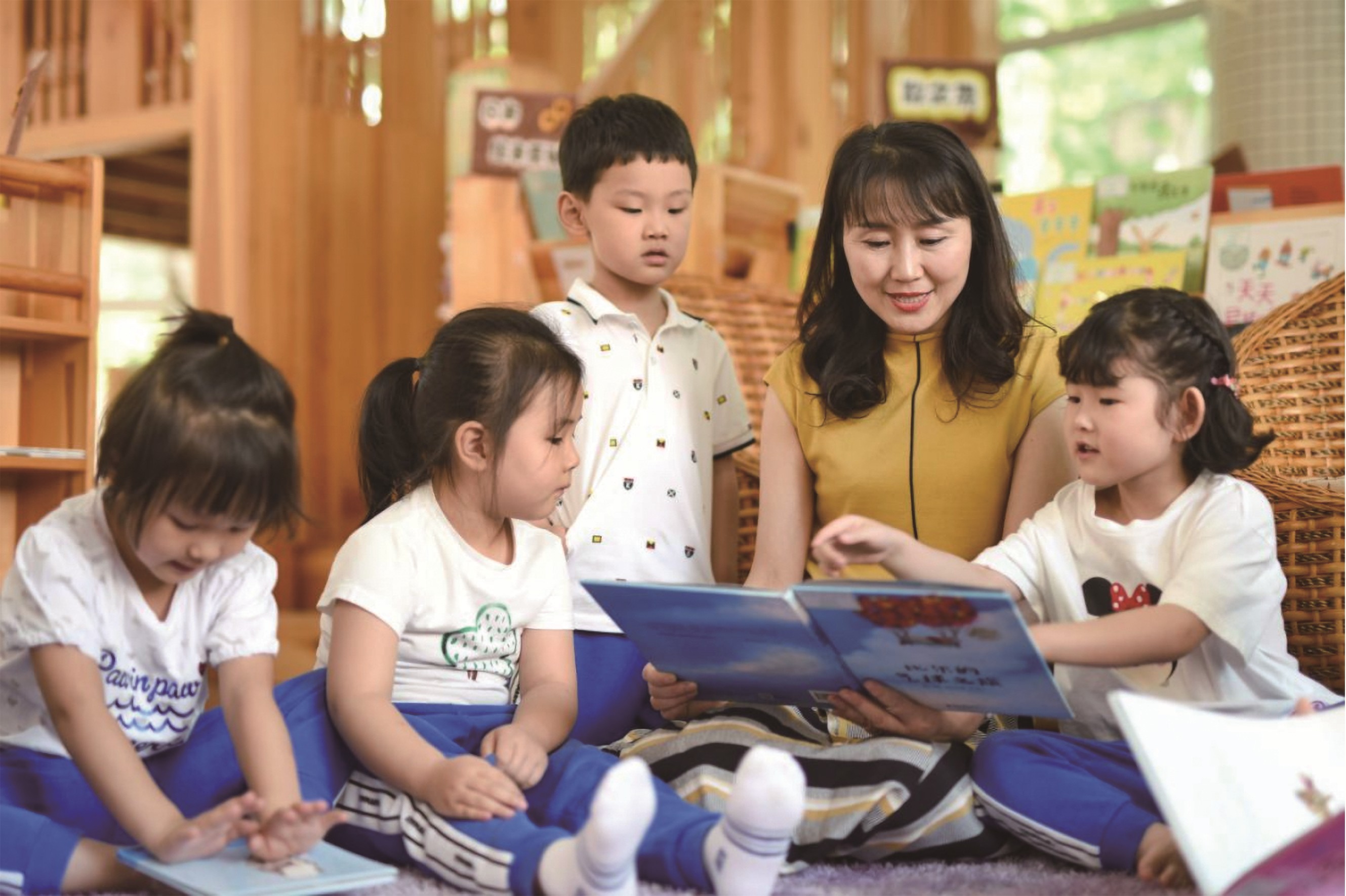 冯萍和幼儿园的孩子们一起阅读。(图片由受访者提供)