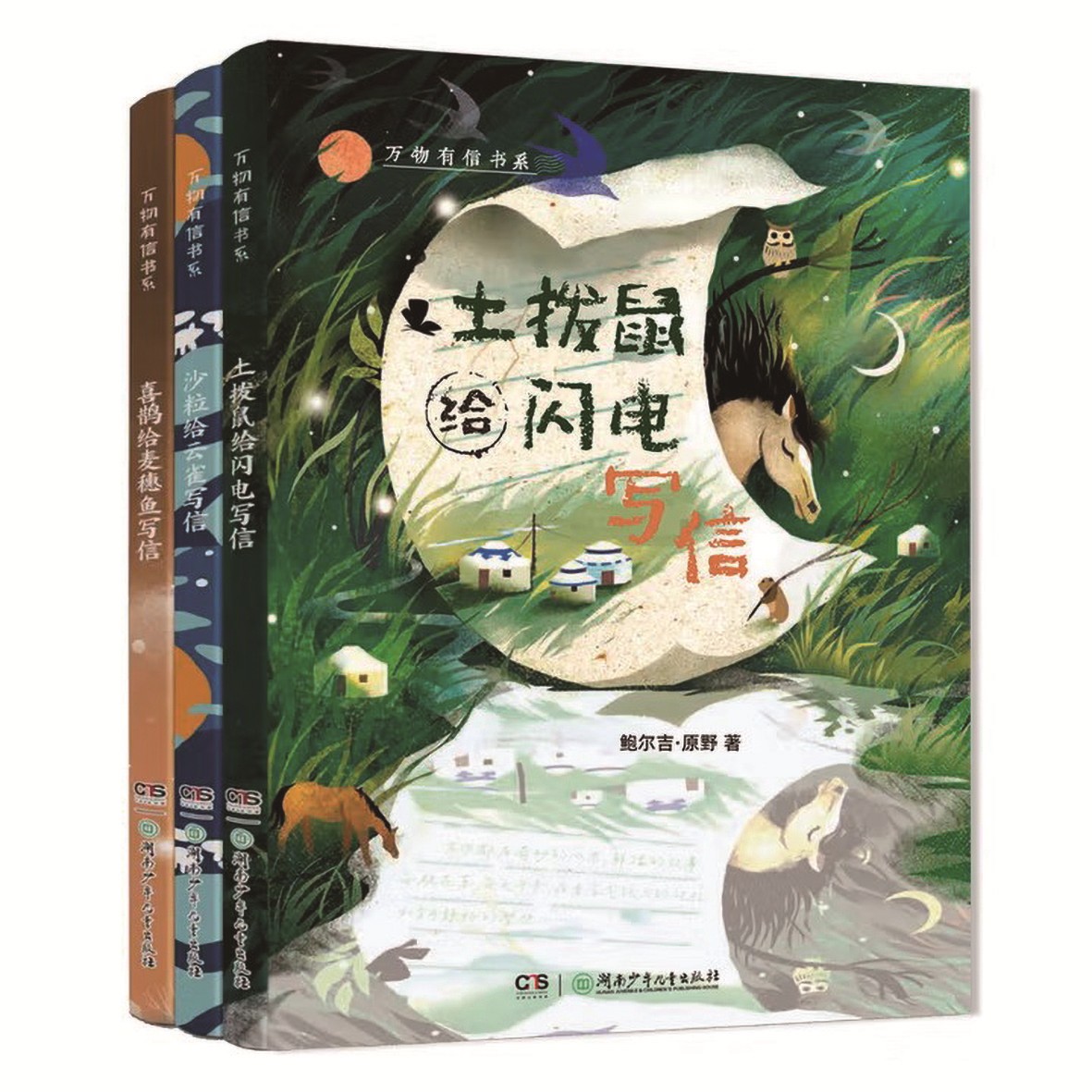 这套书系包含《土拨鼠给闪电写信》《喜鹊给麦穗鱼写信》《沙粒给云雀写信》3册。作者以170多封跨越物种、超越时空的书信,构建了一个万物平等对话的童话宇宙。在这里,土拨鼠可以思念闪电,骆驼能为戈壁辩护,蝴蝶与波斯菊互诉衷肠……这些角色不是简单的童话形象,而是充满生命力的诗意存在。