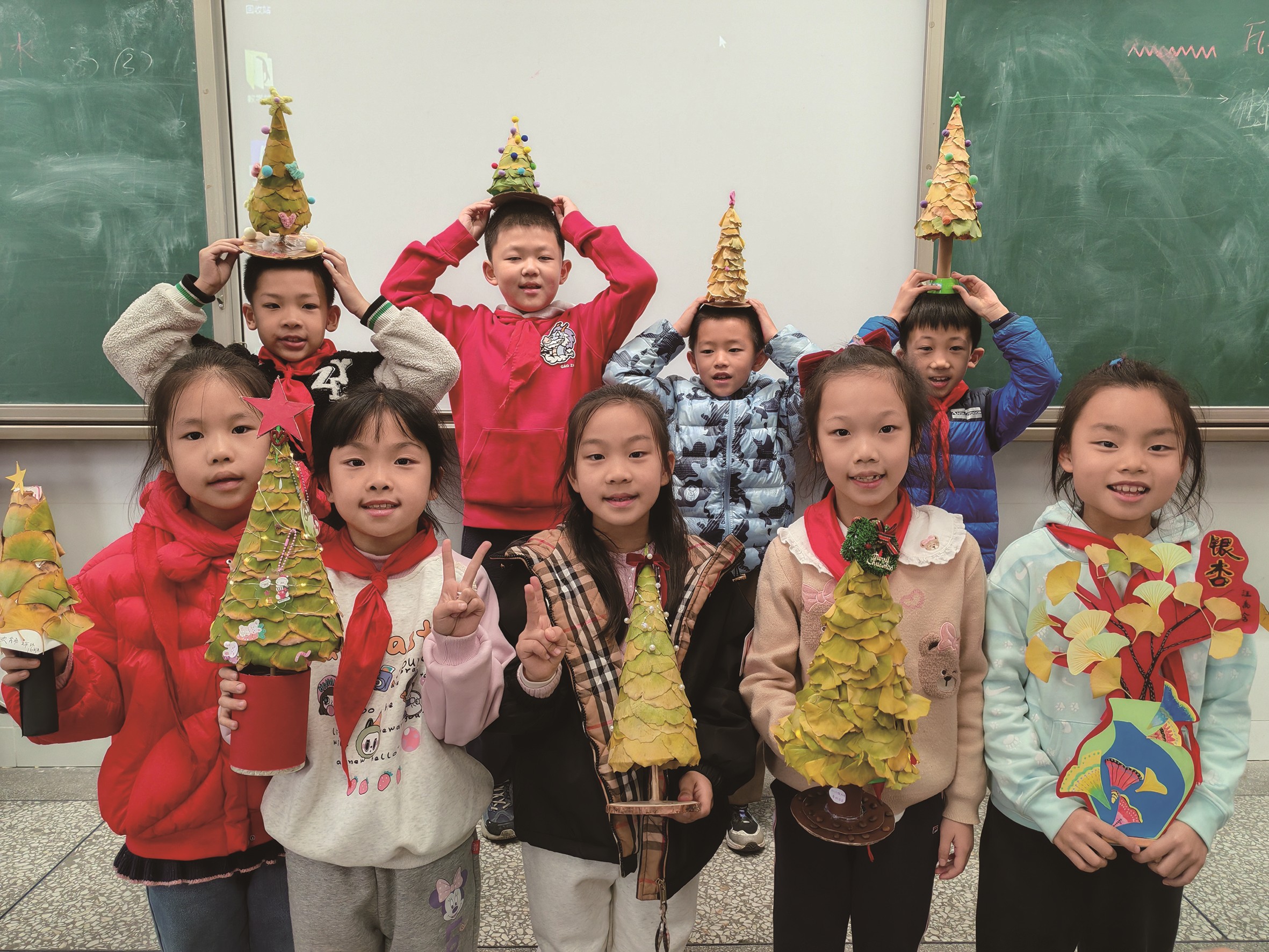 泡小西区副校长刘杜娟介绍,学校的“银杏课程”并未止步于单一学科的主题教学,而是更加注重学科之间的有机融合与协同育人。在老师们的引导下,语文课上诞生的银杏小诗,走进音乐课堂被谱曲成歌;劳动课上收集的落叶、果实,在美术课上转化为拼贴画与手工作品;科学探究中银杏的“活化石”之谜,则为孩子们打开了一扇通往自然历史的窗口……