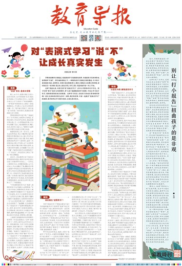 “表演式学习”犹如一面镜子,既照见孩子在压力下的“智慧”,也照见了教育环境、教养方式中亟待改善的地方。朱煦表示,家长和老师应该明白,真正的教育不是培养完美的“优等生”,而是培育敢于直面真实、勇于探索未知的完整的人;要帮助孩子意识到,“我有多想知道”比“我有多好”更重要,进而主动思考“我如何能知道”,这才是真实地学习。