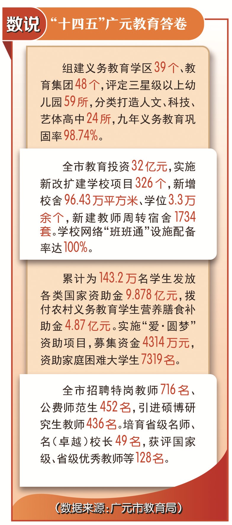 “十四五”期间,广元市立足落实立德树人根本任务,将得天独厚的自然环境与底蕴深厚的古蜀道文化、红色文化等有机整合,构建起全方位、多层次的研学实践教育体系。截至目前,全市累计开展研学活动216期,吸引中小学生120余万人次参与。从蜀道感悟古今变迁,到红军城感怀革命先烈,再到自然保护区探寻生态奥秘,丰富的研学活动已成为当地中小学生的学习常态。教育阵地从课堂延伸至自然与社会,育人方式实现创新变革,为促进学生全面发展筑牢坚实根基。