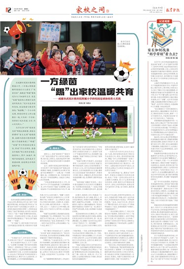 一位参与其中的学生家长告诉记者:“以前,我回家看见的是孩子埋头写作业或自己玩。现在,周末我带他们练球,聊起‘为什么传球要提前’‘丢球了该怎么反抢’这些话题就停不下来。足球不仅教会我和孩子们‘像哥们儿一样相处’,也教会他们学会协作与担当,这种优良品格还可以转化为家庭生活中的责任与体谅。”