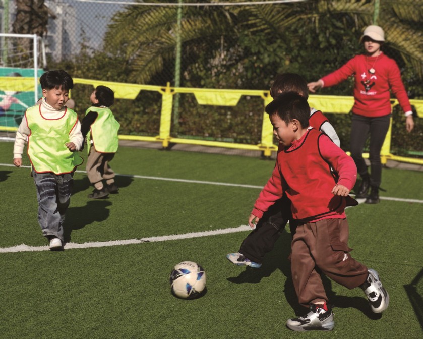 “体育的浸润,让不同性格的孩子找到成长支点。”鲍雪霏说。性格安静的樊奕煊刚入园时连体操都不愿意做,后来在滑步车课程中逐渐找到了运动的乐趣,还爱上了攀岩;活泼好动的权泊予,在足球赛中因表现突出获得认可后,逐渐将精力转向运动与学习,如今在就读的小学成为校足球队的主力,更在市级比赛中崭露头角。“体育让他学会了专注与规则,这种转变远超我们预期。”权泊予爸爸感慨道。