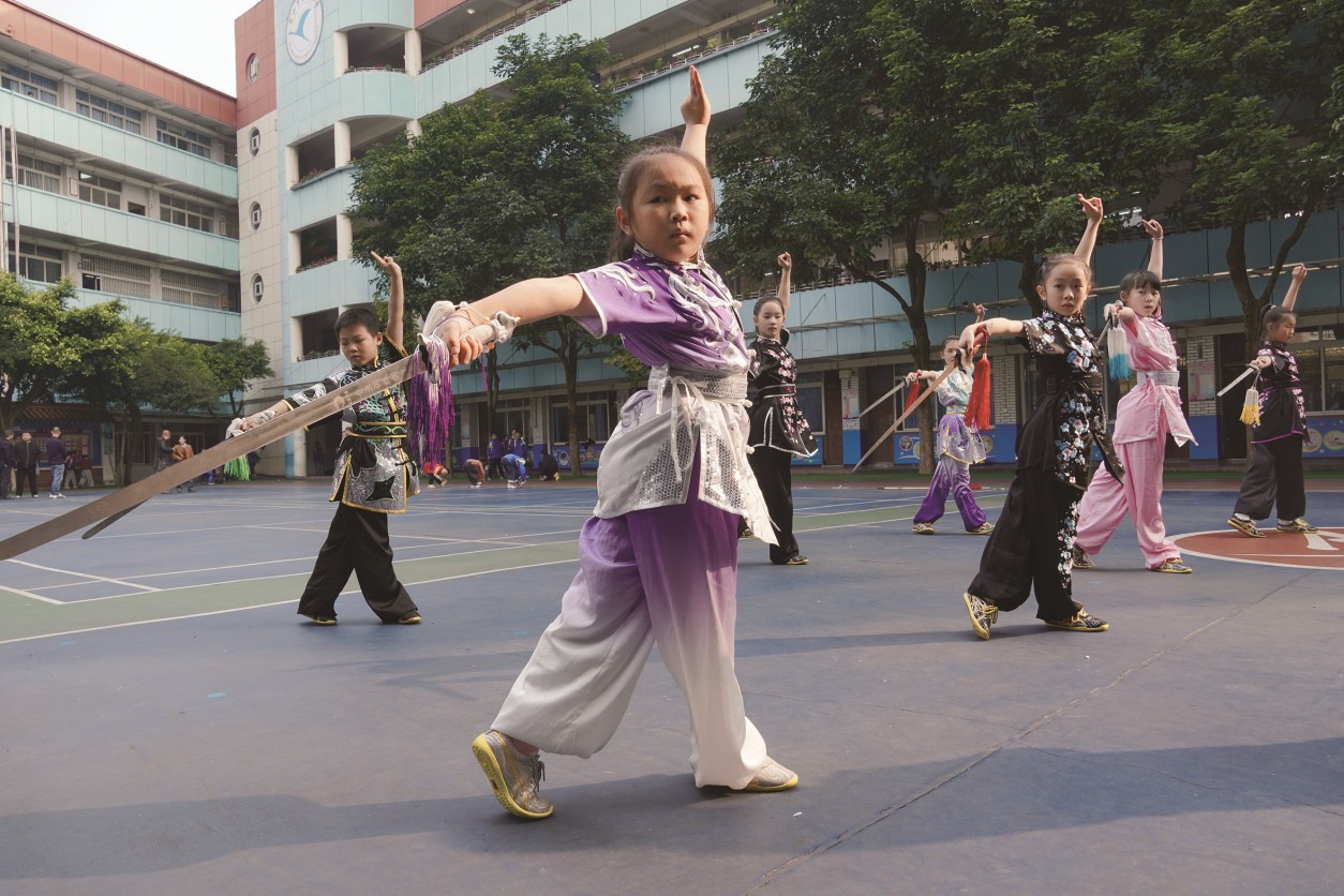如今,新建小学走出了一条从全员普及到特长提高,再到学科融合的“武术+体育”特色之路。每天阳光大课间,全校学生列队齐练特色武术操,招式编排融入峨眉拳精髓,学生个个精神抖擞、挥拳动作虎虎生风;武术必修课上,学生们从抱拳礼学起,在反复压腿、冲拳中变得有力量、懂礼貌;武术社团的“高手们”则征战各类赛事,捧回200余枚金牌。2025年10月,在第十届世界传统武术锦标赛中,学校15人出战全部获奖,获得11金、17银、2铜的好成绩。如今,“武术+美育”“武术+语文”的融合课堂在学校遍地开花,讲武术典故、画武术速写,老师们带领学生全方位、多维度感受传统武术的力与美。