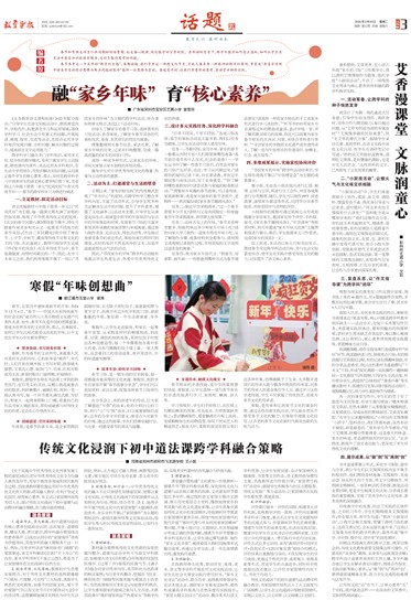 春节,在农历中意味着新年的开始。2024年12月4日,“春节——中国人庆祝传统新年的社会实践”成功列入人类非物质文化遗产代表作名录。如今,春节不仅是中国的团圆盛宴,更成为世界共享的文化狂欢。那么,在寒假里,如何让学生沉浸式感受这浓浓的年味,让年文化在学生心中生根发芽呢?