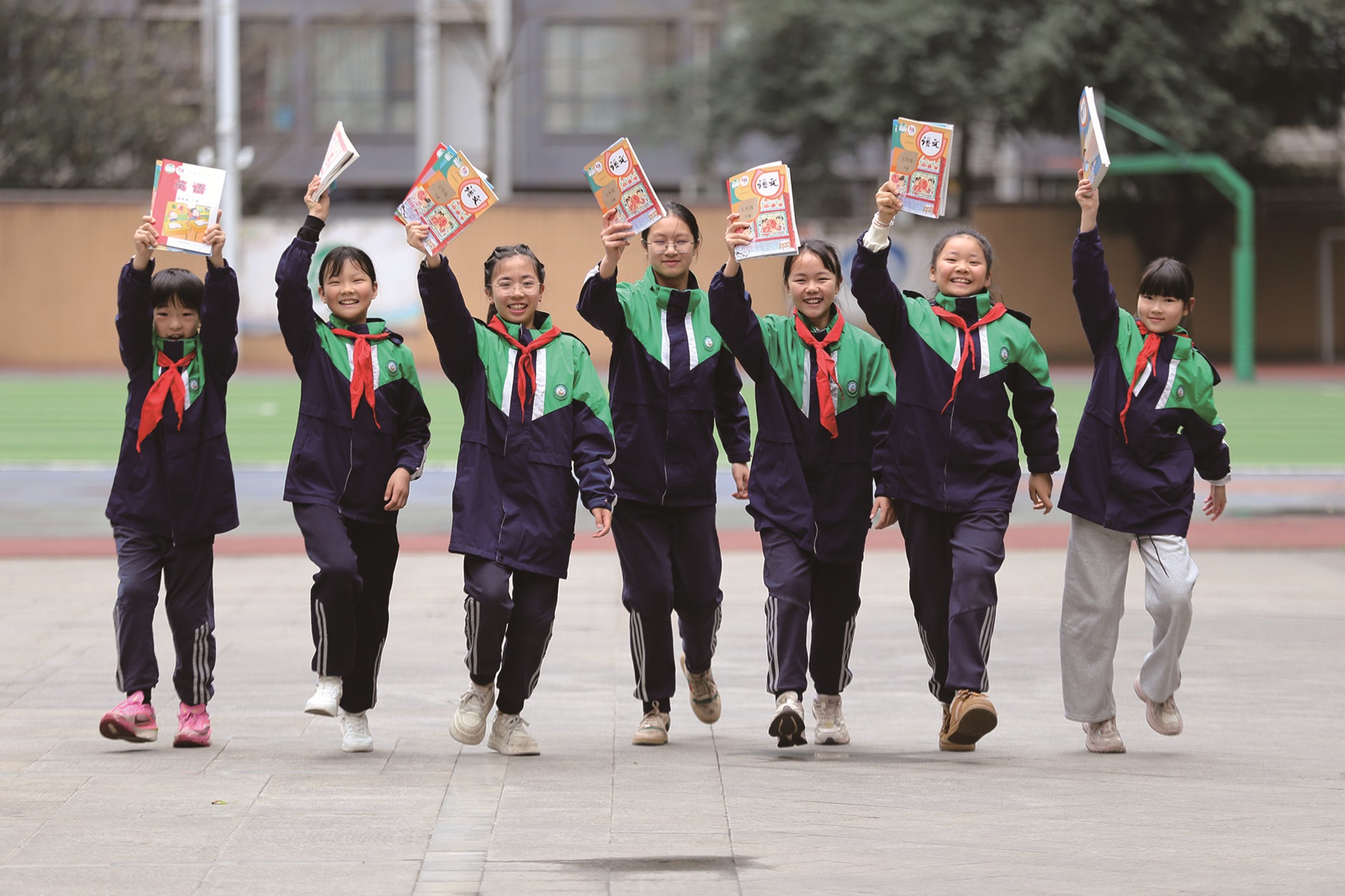 3月1日,乐山市翡翠实验学校学生手持新课本,开启新学期。(李华时摄)
