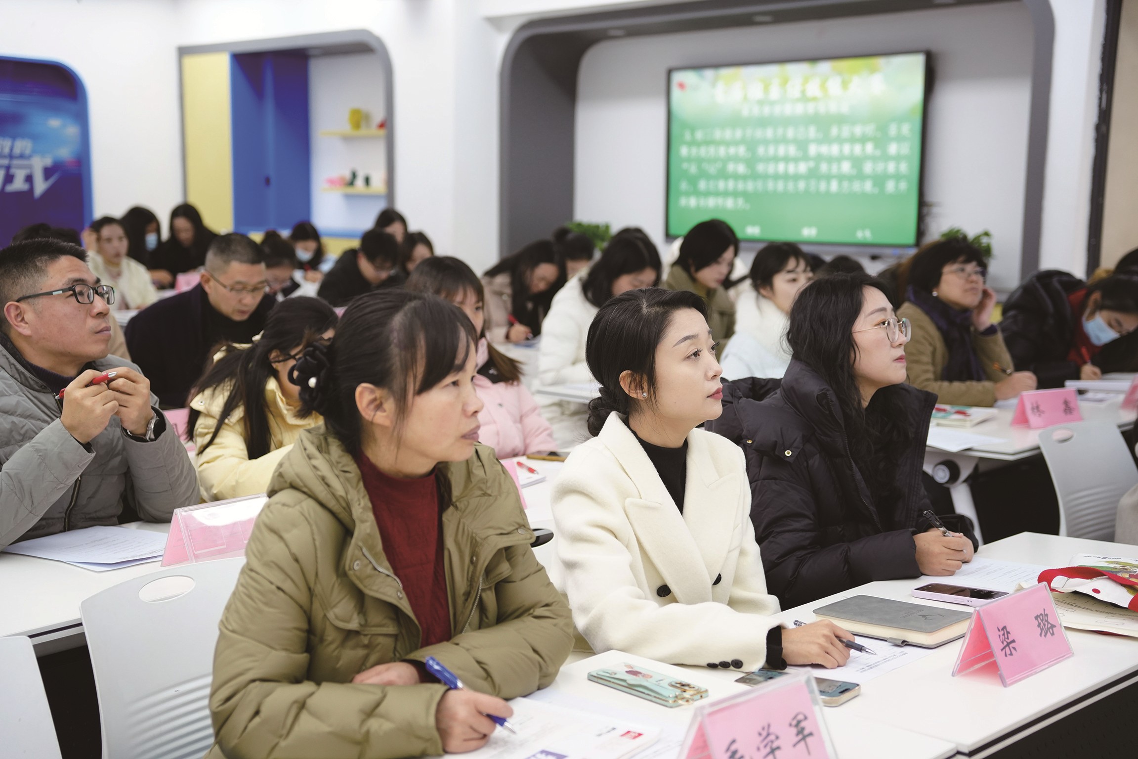 在这个女性居多的集体,滋生出了别样的温暖。戴雪辉表示,年长教师身体不适时,总会收到同事的关心。办公室里,女老师们分享的小零食、偶尔的咖啡奶茶,为忙碌的工作增添了温暖的生活气息,新入职的教师也能很快融入这份其乐融融的氛围。梁娟喜欢这种无话不谈的亲密感:“我们可以聊孩子养育、家庭琐事,也能聊国际形势、娱乐八卦,既有书山题海的严谨,也有花香四溢的温情。”