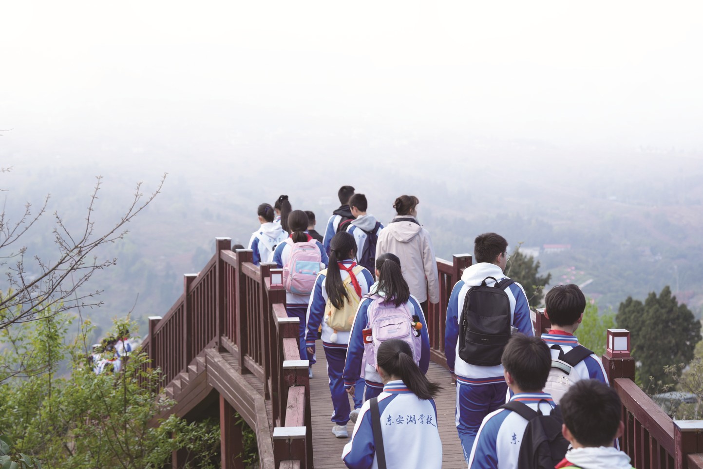 “所有的学生都带上了运动手环,用来监测心率等指标,回来之后要形成体能报告,科学分析,并进行总结。”教师魏晓云告诉记者,在自然环境中强健体魄、磨炼意志的过程,正是体育走出操场、回归生活的体现。师生徒步路线是龙泉山钟家山森林步道的一部分,在这个春日,步道两侧除了盛开的桃花、青翠竹林、零星油菜花田,还有发芽的树木和时令的野菜,五颜六色交织,师生们在美景中尽情呼吸、自由行走。