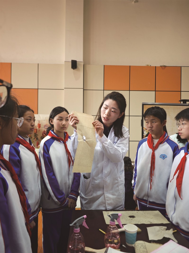 学生龚柠萱在做完补洞后长舒一口气:“刚才修书的时候,我感觉整个世界都安静了。爬山的时候心跳很快,但现在我的心静下来了。今天上午,我明白了不管是徒步爬山还是修复文物,都需要坚持和坚韧的精神。”