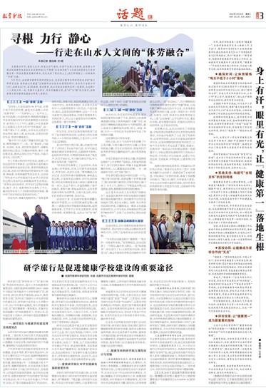 “今天的活动就是践行‘健康第一’理念的一次探索和实践。”朱雪林指出,活动还探索了一个路径:融合育人路径。一是“体育强身”,学生进行了3 .1公里的徒步拉练,徒步是“动”,通过有强度的身体活动锤炼学生的意志品质;二是“劳动润心”,四川博物院的文物修复师带领学生进行“古籍”修复,让他们既了解源远流长的中华文化,又亲身感受专注和坚持的力量,这是一项知行合一的劳动,在接受、认同、传承中弘扬优秀传统文化;三是“文化铸魂”,让学生聆听历史、重走办学路,进而增强对国家、民族的认同和文化的传承,这才是活动主线。