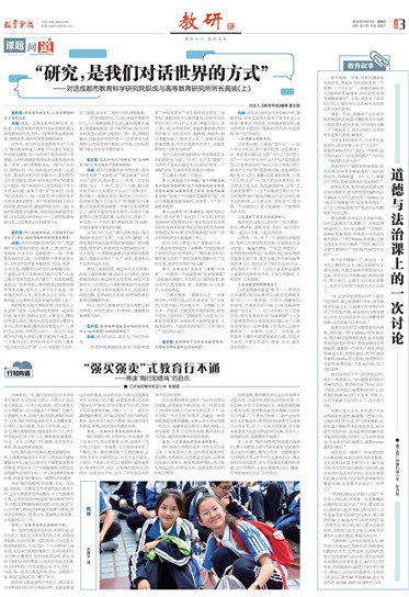 第二,让研究“长”在课堂上。做研究的过程中,要不时停下来问自己:学生有没有因为我的研究变得更好学?课堂有没有因为我的研究变得更有效?我自己有没有因为研究变得更从容?如果这些答案都是“没有”,那说明你的研究可能偏离了初心。