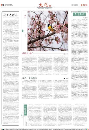 若是遇见鸟鸣,珍惜还来不及,怎么忍心驱赶鸣唱的小生灵?我常为现在的孩子感到遗憾,鸟的种类和数量都比从前稀少,孩子们又大多生活在城里,接触大自然的机会不多。不像我们儿时,能辨识出不同鸟鸣的韵律:麻雀“叽叽喳喳”,像一群争抢发言的孩童;燕子“唧唧”“啾啾”,唱的是温柔的春日小调;斑鸠“咕咕”低吟,沉稳而浑厚;红耳鹎的叫声是有规律的三音节,清亮而活泼;白鹭向来孤言寡语,只偶尔发出一声悠长的“嘎——”,清旷而疏淡……倾听鸟鸣,实在是一种美的享受。