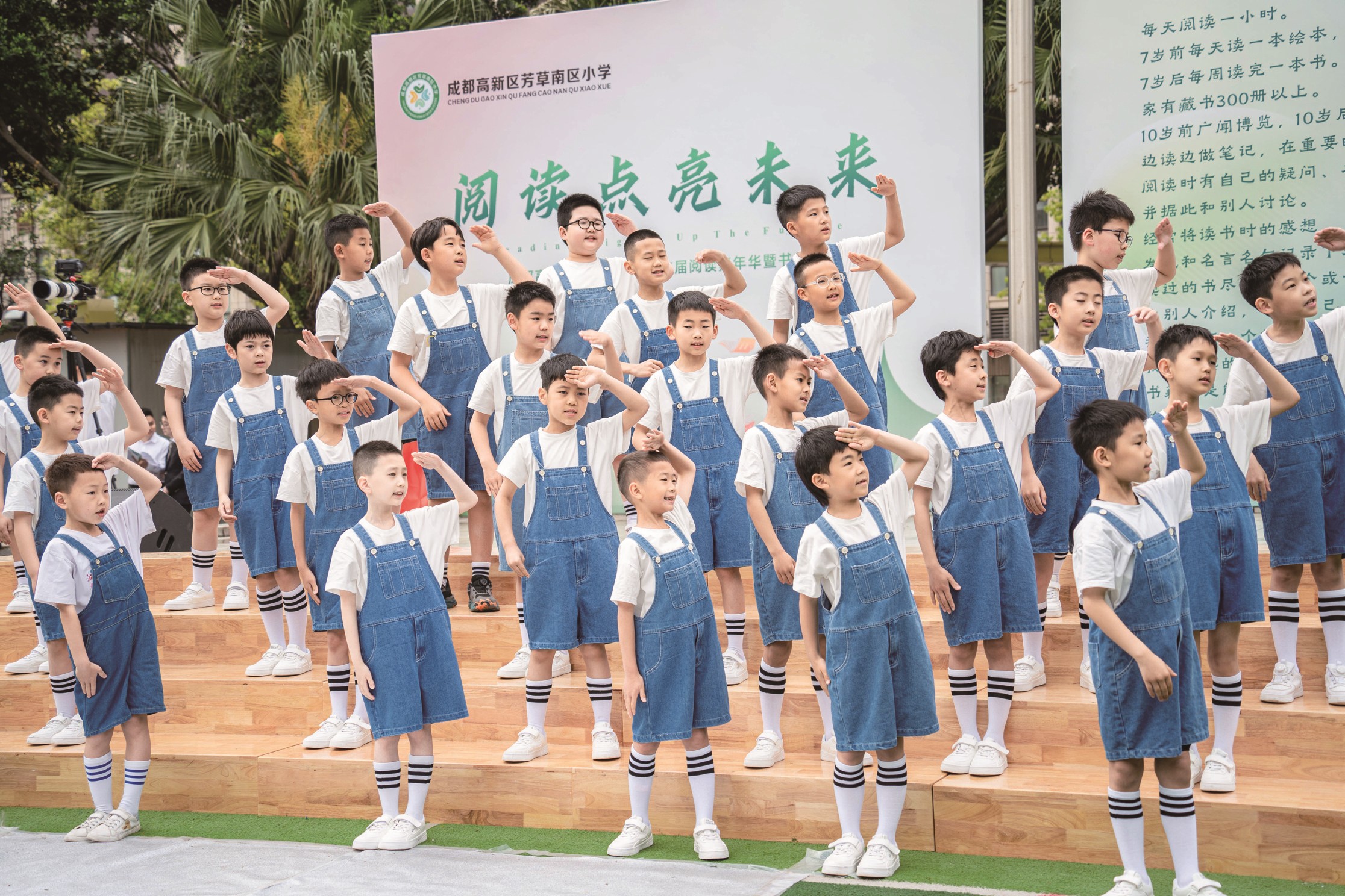 “我要分享的书是《鲁滨逊漂流记》”“我今天带来一段关于勇气的演讲”……近日,成都高新区芳草南区小学(以下简称“芳草南区小学”)门口搭建起“自信表达小舞台”,学生踊跃上台,开展主题演讲、好书推荐、故事演绎。